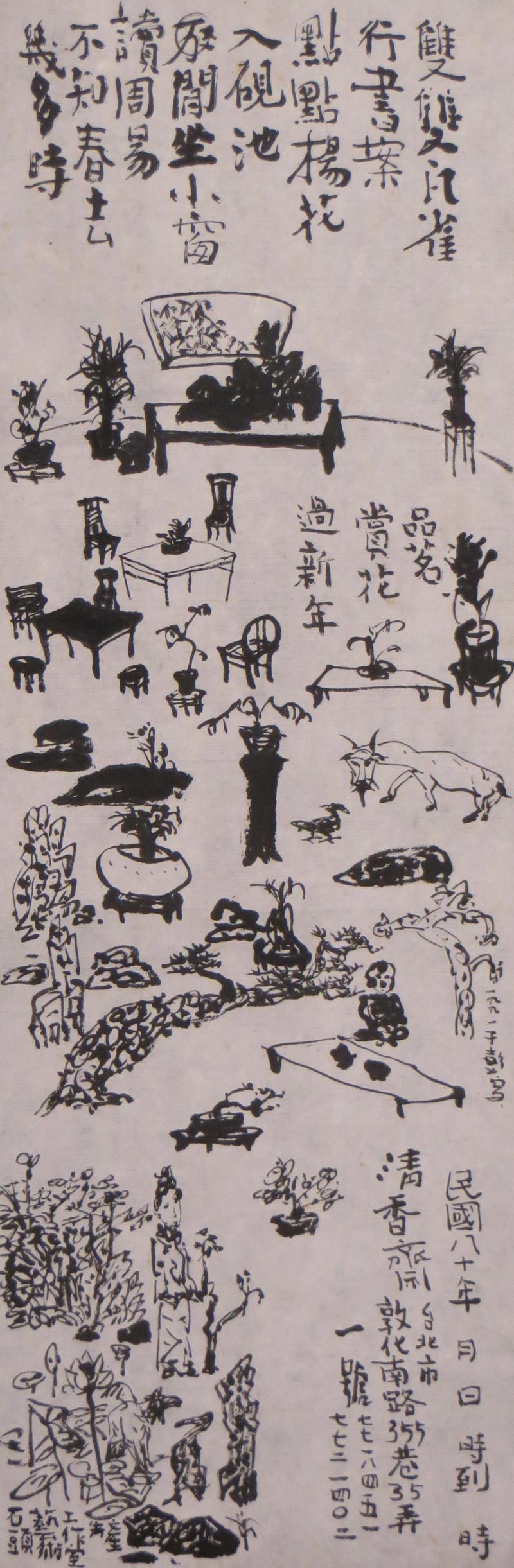 Enjoying Tea, Appreciating Flowers, and Celebrating the New Year 水墨紙本